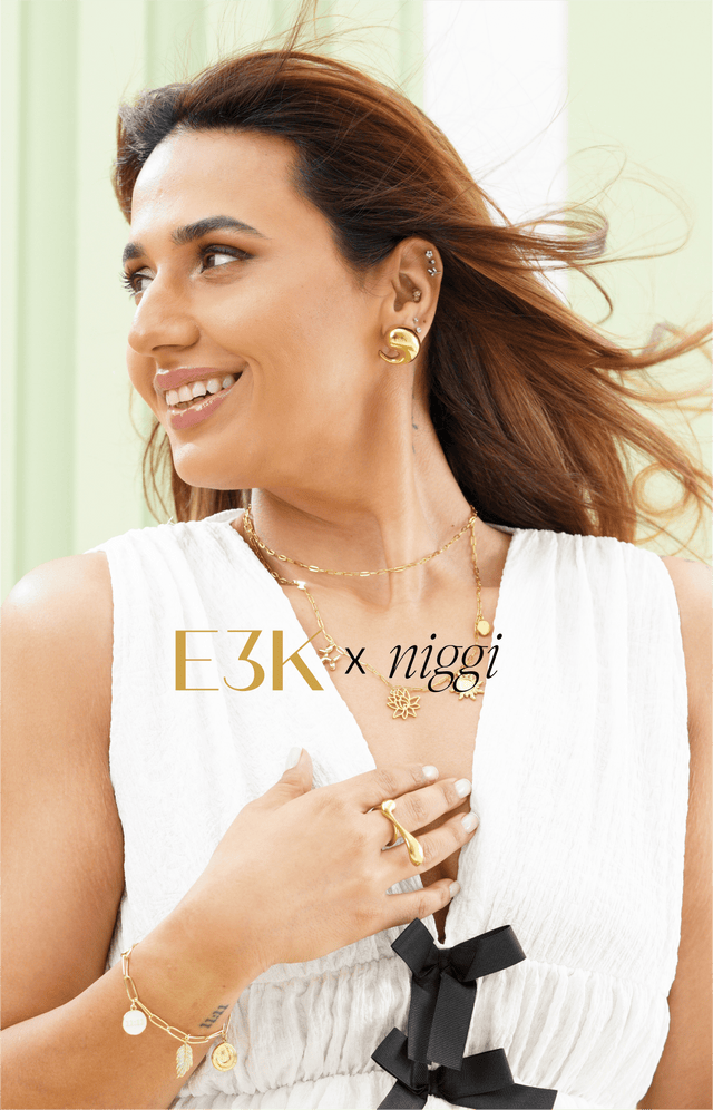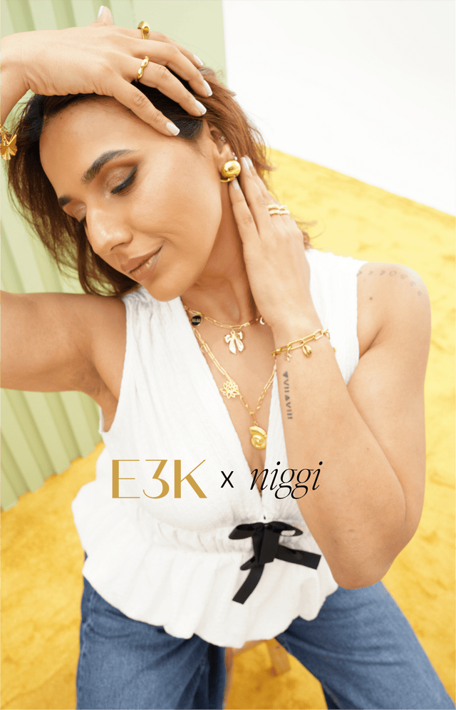 E3K x niggi is more than a collaboration — it’s a vision curated by Niggi herself. Each 18k gold-plated chain was designed to be a canvas, waiting to be brought to life with charms. Whether stacked bold or styled with subtle intention, every piece reflects the freedom to create and the joy of self-expression. This collection celebrates jewelry as personal, playful, and entirely your own.
