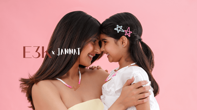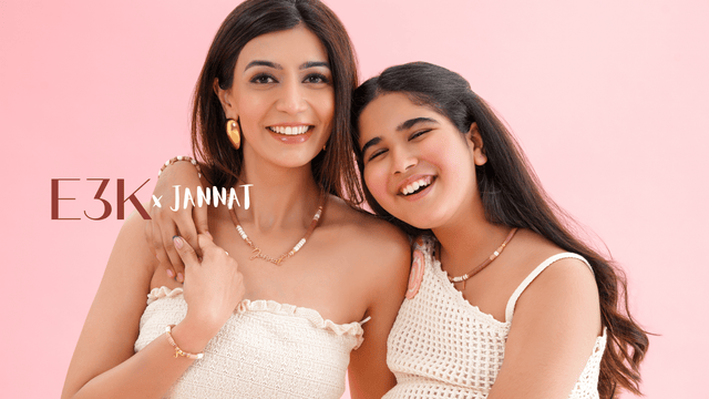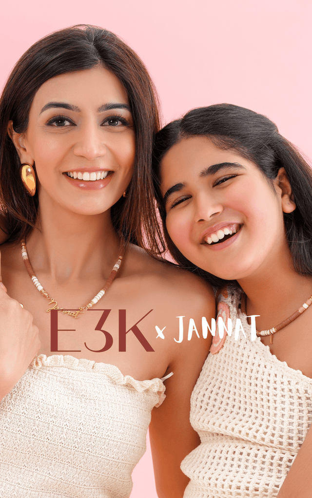 E3K x Jannat is E3K’s first-ever kids collection, co-designed with 10-year-old Jannat whose creativity and imagination bring a fresh perspective to timeless design. Each 18k gold-plated treasure celebrates the most meaningful bonds — from playful minis to matching mom-and-me pieces — crafted to hold love, memories, and everyday sparkle.